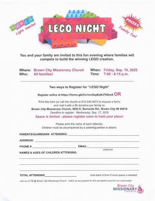 Contact the Church Office for a Registration Form - BCMISSC@GMAIL.COM or 810-346-4673